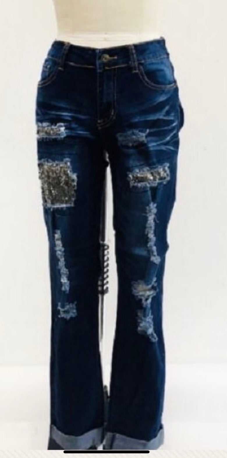 These Cute silver sequin Patches jeans are sure to be a hit of the party.