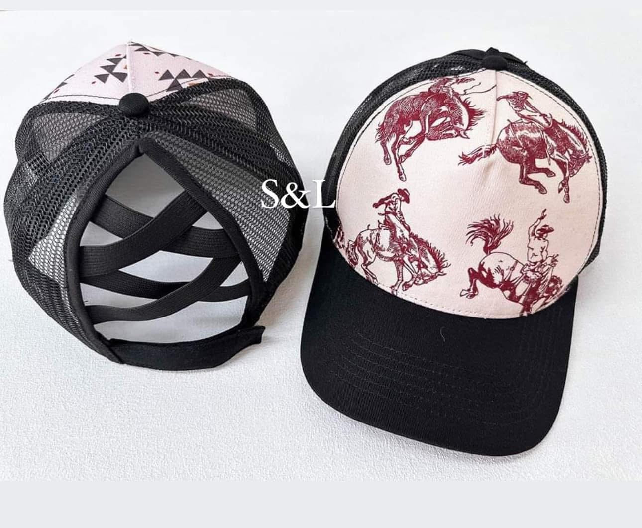 Mesh back ponytail baseball cap.