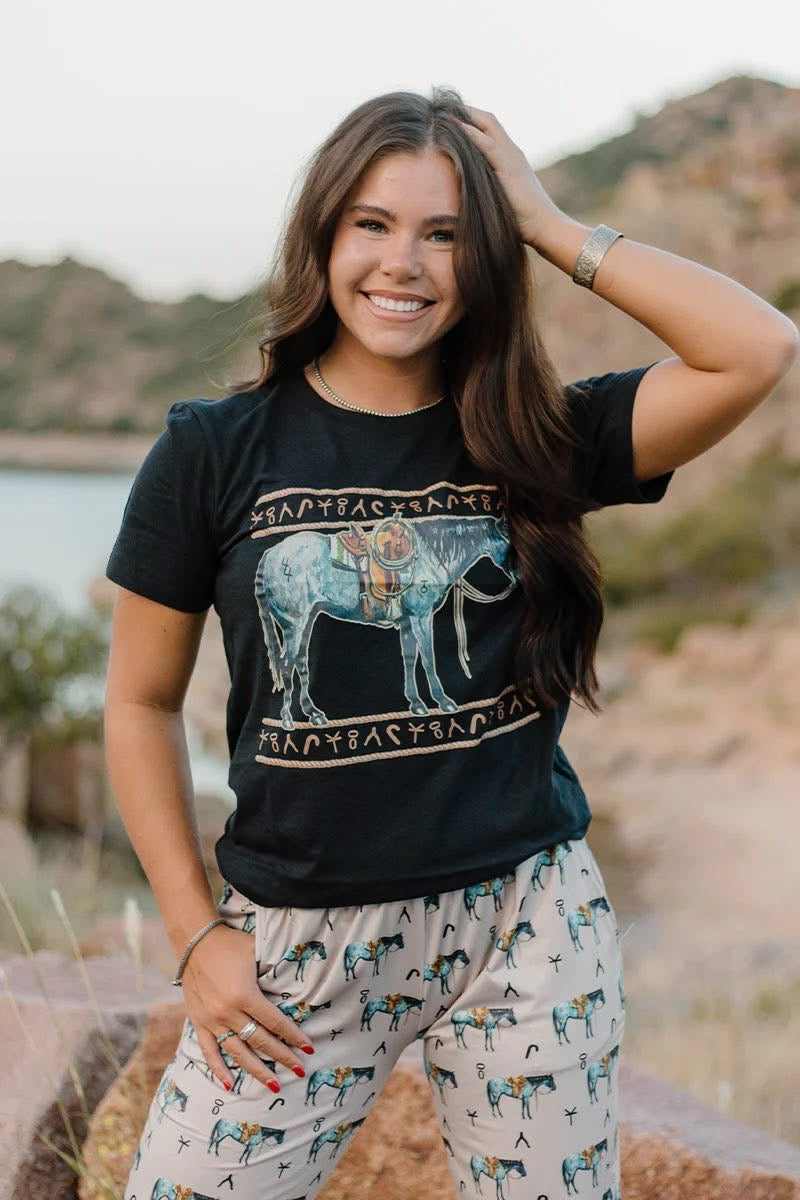 Ride into style with the Old Town Road Tee! This cute and comfy top pairs perfectly with the matching shorts for an adorable look. It's the ultimate outfit for any adventure. Yeehaw!